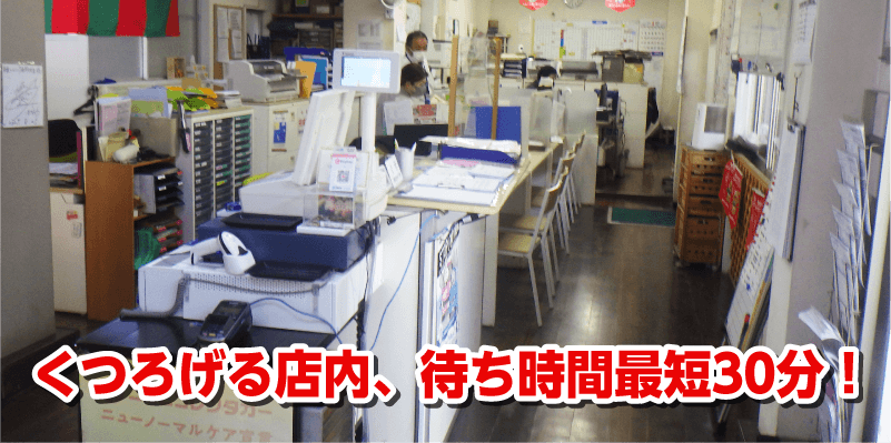 ご予約いただければあまりお待たせせずに作業にとりかかりますので、およそ30分程の待ち時間となります。お客様の混雑状況によっては多少前後することがございます。
